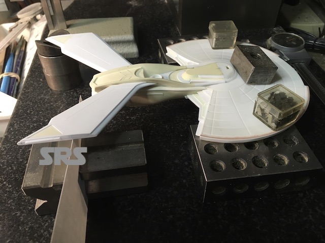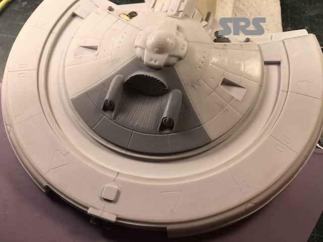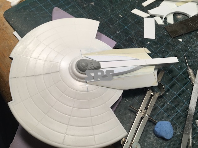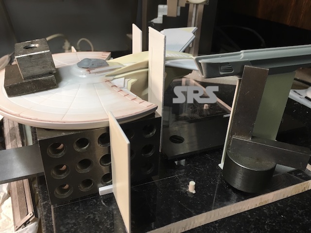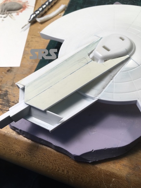After sectioning the saucer, the extended B/C deck walls are put in place.