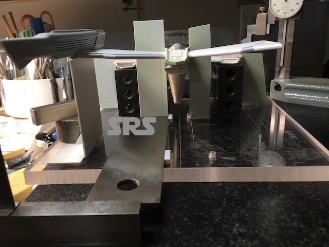 To create the jigs that I use, I start with .5″ clear acrylic sheet. It is extremely stable, (no warping with age) so it is always dead flat. It also allows for easy reading of scribe lines, location holes, etc. From there I can use precision blocks and levels to keep things accurate. Styrene also welds nicely to the acrylic.