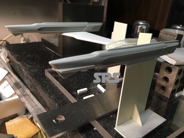 Next is the secondary hull. As with the saucers, both parts were made at the same time since they shared similarities. The material used for the hulls is Ren-Shape.